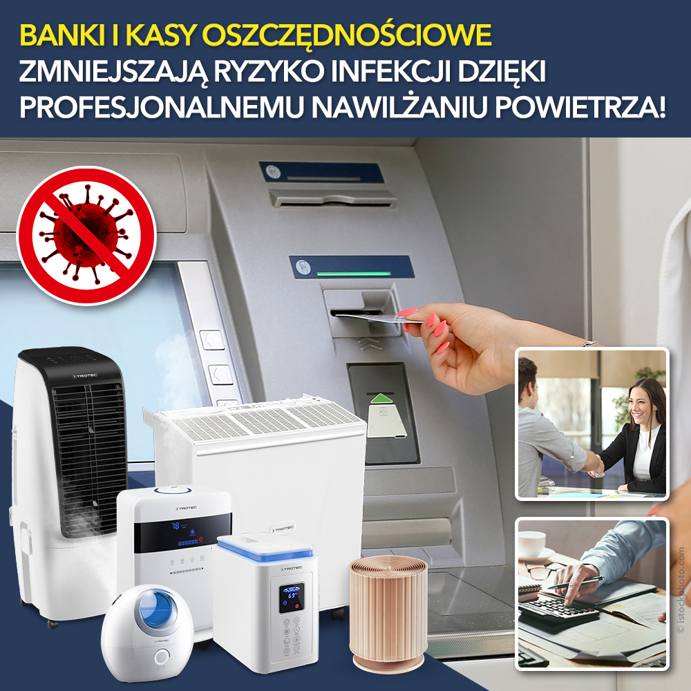 Koronawirusy „krążą” w powietrzu: banki i kasy oszczędnościowe ograniczają ryzyko infekcji dzięki profesjonalnemu nawilżaniu powietrza