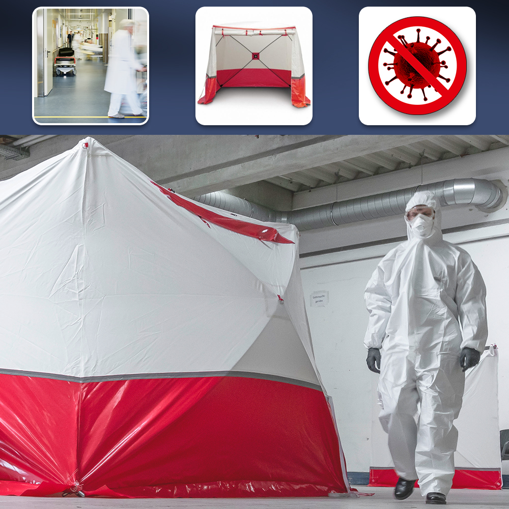 Szturm osób zakażonych koronawirusem na placówki pogotowia ratunkowego – tego obawia się wiele szpitali. Ponieważ taka sytuacja grozi uwolnieniem wirusów w samym sercu opieki zdrowotnej – w lekarskich gabinetach zabiegowych. Aby od samego początku wykluczyć ten przerażający scenariusz, coraz więcej szpitali, a także dużo gabinetów lekarzy rodzinnych domaga się przeniesienia obszaru diagnostyki i pierwszej pomocy na zewnątrz przed wejściami do namiotów sanitarnych. Profesjonalne namioty do szybkiego ustawienia firmy Trotec stanowią w tym przypadku najlepszy wybór.
