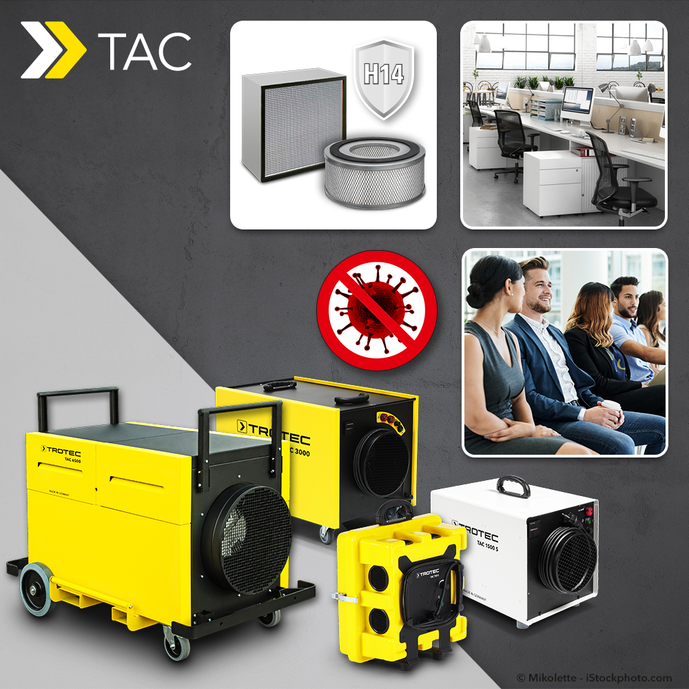 Ten, kto odpowiada za biuro i budynki użyteczności publicznej, współdecyduje o tym, kto może lub musi zostać w domu, a kto jest nieodzowny na miejscu. Ryzyko zakażenia dla tych pracowników, których obecność jest obowiązkowa, rośnie przy tym proporcjonalnie wraz wielkością biura lub większą ilością gości. Tym ważniejszą rzeczą jest ochrona tych pracowników – według badań, wirusy SARS-CoV-2, które wydostały się podczas kaszlu, przebywają w powietrzu w pomieszczeniach do 3 godzin. Na naszej stronie pod hasłem„Zastosowania” dowiesz się więcej o efektywnych rozwiązaniach z zakresu utrzymania czystości powietrza biurze i budynku użyteczności publicznej: oczyszczacz powietrza TAC z filtrem wirusów H14!