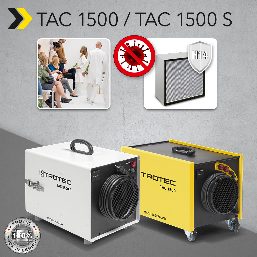 Koronawirus: profesjonalny oczyszczacz powietrza TAC 1500 / 1500 S – do obszarów o podwyższonych wymaganiach higienicznych do powierzchni 14 m² lub 35 m³