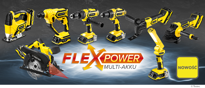 Flexpower – innowacyjny system wielofunkcyjnego akumulatora firmy Trotec – tak bardzo przekonał do siebie rzemieślników i majsterkowiczów, że  został bardzo szybko wyprzedany. Ponieważ z Flexpower jesteś w każdej chwili gotowy do długotrwałej pracyoraz możesz zaoszczędzić sobie niepotrzebnych akumulatorów i ładowarek. Skończą się również poszukiwania pasującego akumulatora – bo wymieniasz urządzenie, a nie baterię. Dobrze więc, że zapasowy akumulator Flexpower 20V 1500 mAh  jest od teraz znów dostępny!