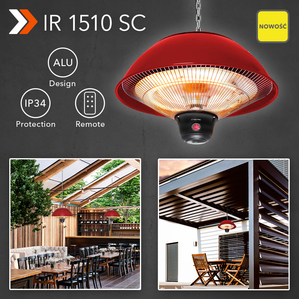 Jeśli nawet w chłodne wieczory goście tłoczą się na tarasie lub balkonie i nie chcą w ogóle wejść do środka, to przyczyn tej sytuacji może być kilka. Rodzina, przyjaciele i sąsiedzi wygrzewają się w przytulnym cieple nareszcie znów dostępnego designerskiego sufitowego promiennika IR 1550 SC o mocy 1500 W, krążąc wokół jego włączanego oświetlenia LED jak ćmy lub dyskutują z zapałem niczym studenci wzornictwa o jego wyjątkowo eleganckim designie z czarnym matowym wykończeniem. Należy więc w tej sytuacji po prostu podać napoje orzeźwiające i cieszyć się ze swego robiącego takie wrażenie zakupu. Zwłaszcza, że za tak bezkonkurencyjnie niską cenę!