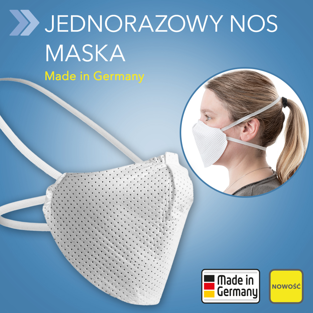 Bardziej skuteczne, bardziej wygodne i tańsze – to są cechy nowych jednorazowych masek Community wysokiej jakości firmy Trotec: Wyprodukowane w Niemczech z doskonałej włókniny filtracyjnej typu melt-blown. O atestowanej przez niemieckie centrum badawcze skuteczności filtrowania 99,5%. Dla całej rodziny do optymalnej ochrony siebie i innych. Ze względu na perfekcyjny kształt i specjalny wykrój jednorazowe maski nie potrzebują metalowego pałąka na nos. Elastyczne gumki masek dostarczanych w opakowaniu po 10 sztuk zapewniają optymalne trzymanie bez uczucia ucisku.