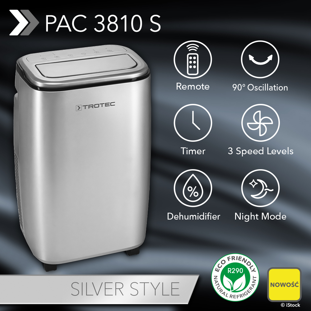 Miłośnicy designu, którzy od pierwszego wejrzenia zakochali się w tym atrakcyjnym wizualnie urządzeniu o eleganckim srebrzystym wzornictwie, mogą odetchnąć z ulgą. W odpowiednim czasie, jeszcze przed wielką falą upałów, nowyklimatyzator PAC 3810 S jest w końcu dostępny. Dzięki temu nawet ci, którzy nieco się zagapili, będą mieli jeszcze szansę uciec przed ponownie rosnącymi temperaturami, a wszystko to za sprawą naszego utrzymanego w doskonałym stylu urządzenia.Na ratunek przychodzi dzisiaj powiew świeżości – i to w odpowiednim momencie!