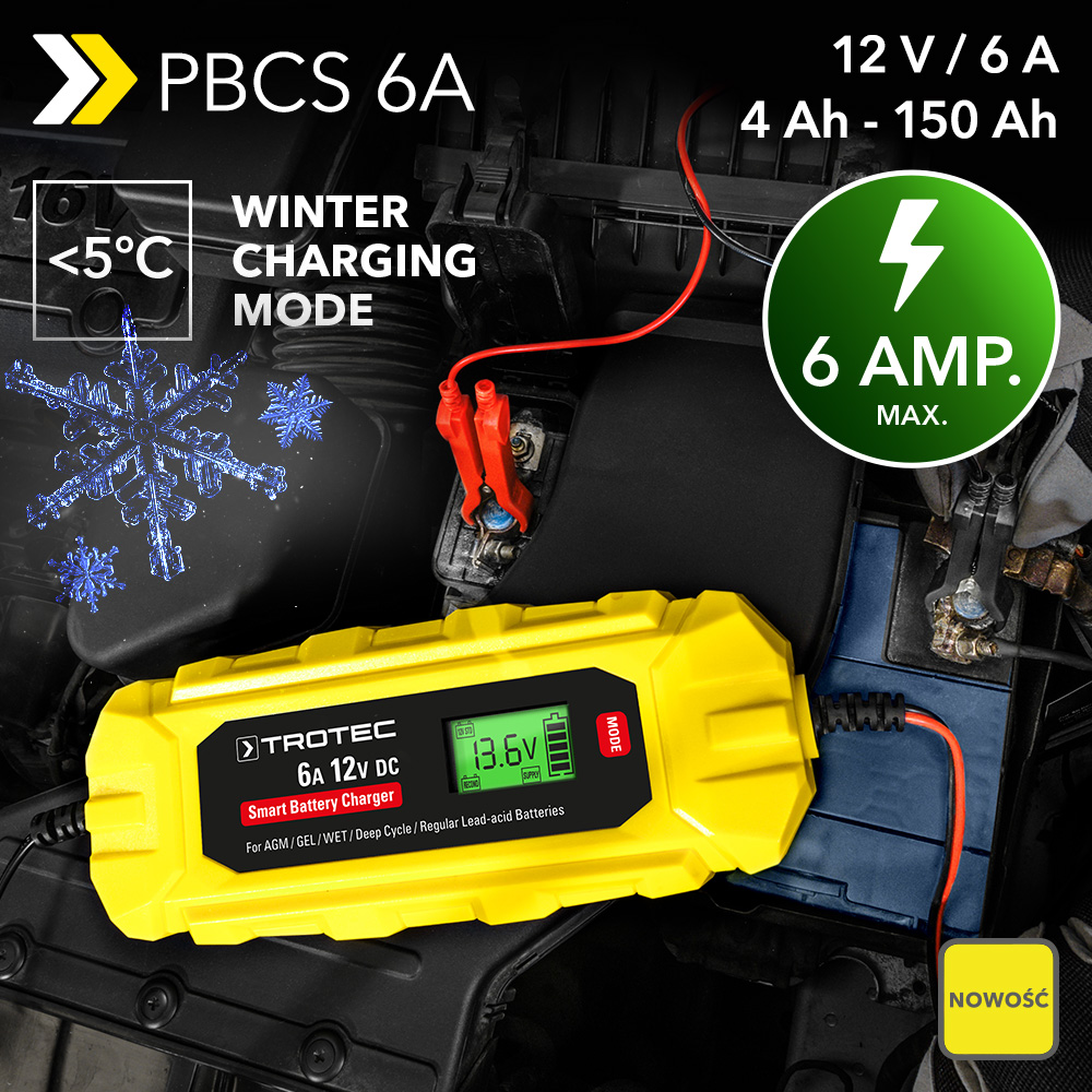 Akumulator samochodowy bez soku? Następnie wystarczy zamówić w sklepie Trotec nową ładowarkę PBCS 6A. Dzięki wyjątkowemu pełnemu wyposażeniu doskonale nadaje się do akumulatorów 12 V o pojemności od 4 Ah do 150 Ah. Sterowana mikroprocesorem uniwersalna ładowarka o prądzie ładowania 6 amperów, z 10-stopniowym cyklem ładowania i podświetlanym wyświetlaczem LCD to najlepsze zabezpieczenie przed rozładowaniem lub nawet uszkodzeniem akumulatora samochodowego czy motocyklowego – umożliwia szybkie ładowanie, regenerację po głębokim rozładowaniu, a nawet wymianę akumulatora z zachowaniem wszystkich ustawień pojazdu.