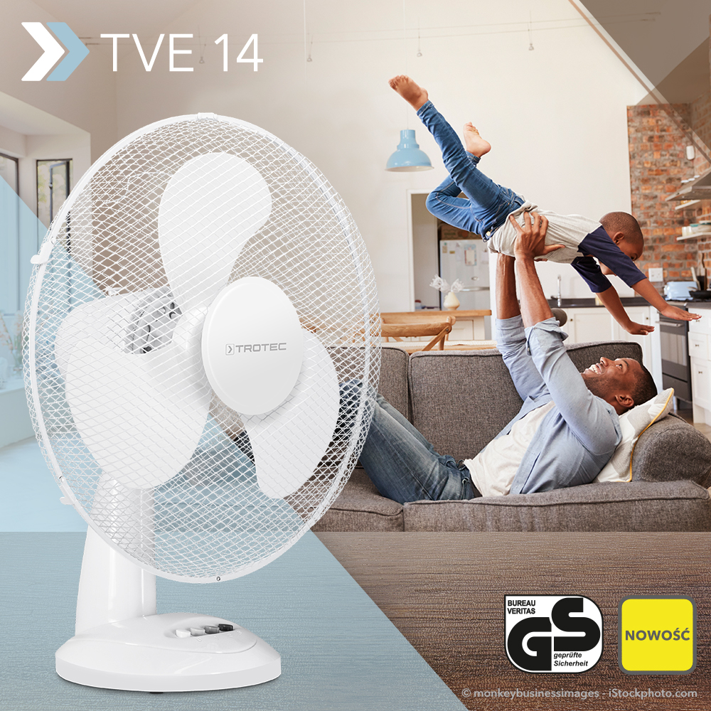 Słońce świadkiem: Kompaktowy wentylator stołowy TVE 14 czyni prawdziwe cuda jako bariera zimna na tropikalny upał w domu i w biurze. Dobry dla wszystkich, którzy zawczasu kierując się rozsądkiem zamówili uniwersalny wentylator i wkrótce mogą się cieszyć odpowiednim chłodem. Wszyscy inni powinni teraz skorzystać ze swojej szansy i natychmiast zamówić go jako wypróbowany środek na piekielny skwar – oczywiście za ekstremalnie niską cenę.