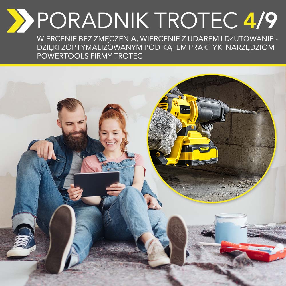 Młotowiertarka i wiertarka udarowa – z takim wyposażeniem nie trzeba bać się żadnych prac remontowych. Zwłaszcza, że oba narzędzia są sprawdzonymi elektronarzędziami firmy Trotec. Za pomocą mocnej młotowiertarki akumulatorowej PRDS 10-20V można poradzić sobie z wyzwaniem wiercenia w twardych jak stal ścianach, które wierci ona bez trudu dzięki zastosowaniu pneumatycznego mechanizmu młotkowego. Natomiast za pomocą kompaktowej wiertarki udarowej PHDS 10‑230V można szybko wykonywać elastycznie wiercenie udarowe, wiercenie i wkręcanie w drewnie, betonie i stali. Bezkonkurencyjny duet – i cena.
