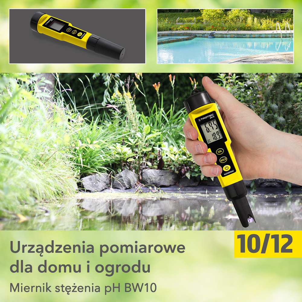 Z każdym dniem radość z letnich kąpieli jest coraz bliższa dla właścicieli basenów i naturalnych stawów wśród naszych czytelników. Aby jednak uniknąć niespodzianek, przed wskoczeniem do orzeźwiającej wody warto sprawdzić, czy wartość pH wody również mieści się w zielonym zakresie. Jeśli odczyn zbyt kwaśny lub zasadowy, Ty lub Twoi kąpiący się goście możecie zareagować negatywnie, tak jak ryby i rośliny w warunkach naturalnych. Kompaktowy miernik pH BW10 mierzy precyzyjnie wartość pH roztworów, od kwaśnych do zasadowych, i dlatego jest idealny zarówno dla właścicieli basenów, jak i dla miłośników akwariów, roślin oraz do profesjonalnej kontroli wody pitnej i wód powierzchniowych.