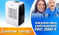 Chłodzić pomieszczenie, a dodatkowo osuszać i filtrować, a także ogrzewać…nowy klimatyzator PAC 2000 X nadaje się do wszechstronnego zastosowania. Dostępna jest tylko ograniczona ilość, więc nie czekajcie i zamówcie zanim wszystkie z nich zostaną wyprzedane tego lata – w cenie promocyjnej 279,95 €! A dodatkowo za tylko 15 € otrzymacie Państwo PAC 2000 X z uszczelką AirLock 100 w pakiecie oszczędnościowym.