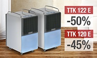 Teraz w promocji oba osuszacze: TTK 120 E i TTK 122 E. Zdecyduj się teraz na któryś – i oszczędź do 50%. Przy pakietach TTK 120 E składających się z 5-cio lub 10-cio pakietowych urządzeń można oszczędzić aż do 56 %, a przy 5-cio i 10-cio pakietach TTK 122 do prawie 60%.