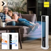 To jest sprytne! To jest cool! Nowy Aircooler PAE 30 łączy świeży wentylatorowy wiatr z naturalnym chłodzeniem wyparnym. W ten sposób można tym stylowym wentylatorem wieżowym nie tylko usunąć z pomieszczenia upalne powietrze, lecz także rozkoszować się chłodzącym orzeźwieniem na skórze. A zimą elegancki klimatyzer jako nawilżacz powietrza zadba o to, by w okresie grzewczym optymalnie nawilżać suche powietrze w pomieszczeniach. To oznacza, że można spokojnie oczekiwać nie tylko na lato, ale też na kolejną zimę. Zgodnie z obietnicą – po prostu sprytne!