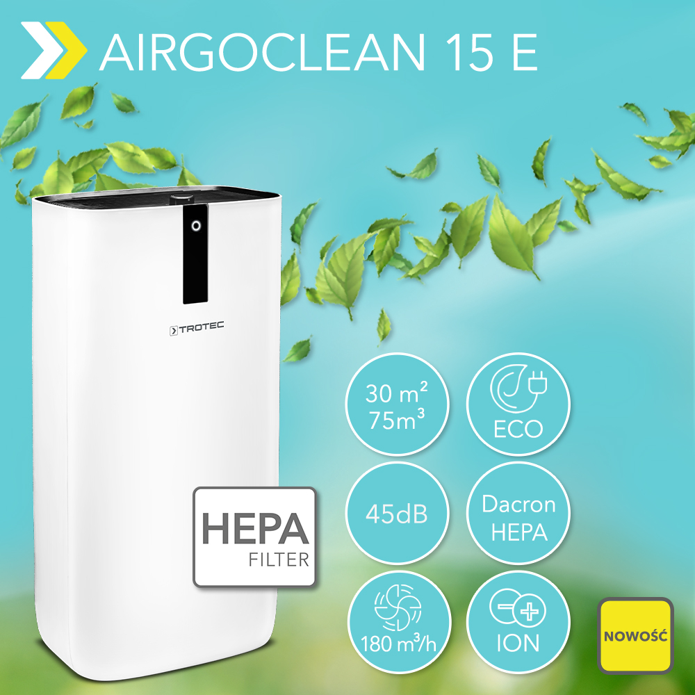 Czy wiesz, że powietrze wdychane w pomieszczeniach prawie nigdy nie jest wolne od szkodliwych substancji? Ponieważ również powietrze w pomieszczeniach z reguły jest zanieczyszczone: bardzo niebezpiecznymi drobnymi pyłkami, wirusami i bakteriami oraz zarodnikami pleśni, aż po „normalnych” towarzyszy, jak pyłki, roztocza i sierść. Prowadzi to pogorszenia formy u wszystkich członków rodziny, a w najgorszym przypadku nawet powoduje choroby. Najwyższy więc czas, by usunąć te szkodliwe substancje ze swojego powietrza w pomieszczeniu i do oddychania – za pomocą nareszcie dostępnego nowego oczyszczacza powietrza Airgoclean 15 E i jego profesjonalnego podwójnego systemu filtrów.