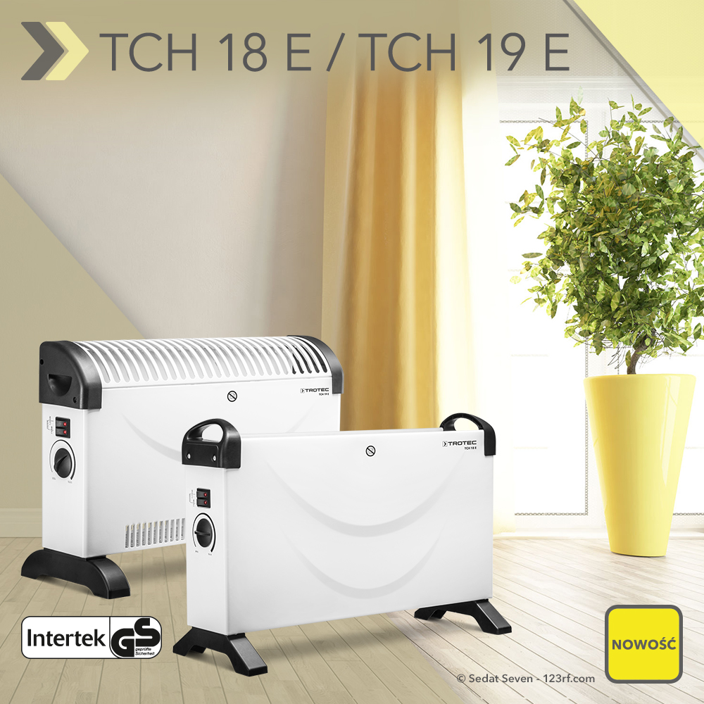 Najpierw jednak parę słów o zasadzie działania grzejników konwekcyjnych. Na czym to dokładnie polega? W grzejnikach konwekcyjnych powietrze jest ogrzewane wewnątrz za pomocą drutów rozgrzewanych elektrycznie i jako ciepłe powietrze unosi się do góry. Naturalne ssanie wciąga zimne powietrze z otoczenia do urządzenia. W ten sposób w całym pomieszczeniu powstaje ciągły obieg ciepłego powietrza, które płynie we wszystkie kąty. Duże kratki wylotowe grzejnika TCH 18 E / TCH 19 E gwarantują przy tym największą osiągalną konwekcję.