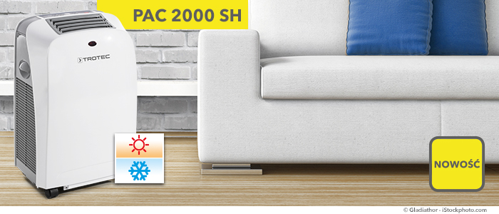 Najlepsze rozwiązanie na gorące, chłodne i wilgotne dni: Zamów klimatyzator 4 w 1 PAC 2000 SH najlepiej jeszcze dziś w aktualnej cenie promocyjnej: zamiast 1 993,72 zł tylko za 1 121,35 zł z VAT– teraz w sklepie Trotec!