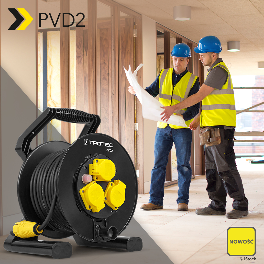 Skorzystaj z markowej jakości firmy Trotec, która stanowi gwarancję prawdziwej wartości, bezpieczeństwa i funkcjonalności: Zamów najlepiej jeszcze dziś nowy przedłużacz na bębnie PVD2 z kablem przyłączeniowym o długości 25 metrów w naszej aktualnej promocyjnej cenie zamiast za jedynie 580,15 zł z VAT – teraz w sklepie Trotec!