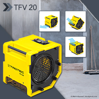Oprócz dwóch dotychczasowych turbowentylatorów TFV 10 i TFV 30 prezentujemy nową klasę tych urządzeń – TFV 20. Z maksymalną mocą 1 185 m³/h to urządzenie wyznacza nowe standardy w dziedzinie suchej wentylacji. TFV 20 jest znakomitym rozwiązaniem, umożliwiającym tłoczenie dużych ilości powietrza przy wielu profesjonalnych zastosowaniach, ponieważ ten wentylator radialny, dostępny wyłącznie w Trotec, wyróżnia się nie tylko swoim dostosowanym do praktycznych zadań niemieckim wzornictwem przemysłowym, lecz przede wszystkim wydajnością i długowiecznością.