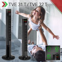 Ten smukły wentylator ma włączaną funkcję oscylacji w zakresie 60°, która równomiernie rozprowadza chłodne powietrze po całym pomieszczeniu. Ponadto modele TVE 31 T / 32 T mają do wyboru trzy tryby pracy: zwykły, „naturalnego” wiatru oraz nocny. Całości wyposażenia dopełniają poręczny pilot, funkcja timera, uchwyt do przenoszenia, nowoczesny wyświetlacz LED wskazujący aktualną temperaturę w pomieszczeniu oraz funkcja zapamiętywania ostatniego trybu pracy, a przy tym wszystkim urządzenie działa przyjemnie cicho.