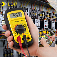 Wielofunkcyjne urządzenia pomiarowe, takie jak BE47, stanowią niemalże nieodzowny instrument kontrolny zestawu narzędziowego większości majsterkowiczów-elektryków i złotych rączek.Za sprawą atrakcyjnego stosunku ceny do jakości multimetr stanowi interesujący dodatek dla ambitnych majsterkowiczów. Nasze nowe wielofunkcyjne urządzenie pomiarowe odpowiada kategorii pomiarowej CAT II 600 V/CAT III 300 V i oferuje łącznie siedem funkcji pomiarowych, w tym funkcję testu diod i baterii, a także akustyczną kontrolę ciągłości i wskaźnik stanu baterii.