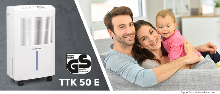 TTK 50 E dla wszystkich zadań, które można postawić nowoczesnemu, komfortowemu osuszaczowi powietrza, ma jasne i proste rozwiązanie. Ponieważ TTK 50 E posiada jedynie kilka bardzo czytelnych elementów obsługowych, więc nie trzeba najpierw długo studiować instrukcji obsługi tego osuszacza. Postawić, włączyć, ustawić moc osuszania – i gotowe!