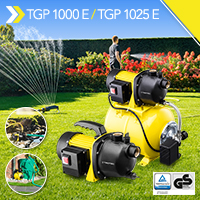 Wydajną mocą 1 000 W pompa ogrodowa TGP 1000 E pompuje do 3 300 litrów wody użytkowej na godzinę. Pompa może zasysać wodę z miejsc położonych niżej na wysokość zasysania do 7 metrów – na przykład ze stawu, studni, cysterny lub z wody płynącej. Zassana woda może być transportowana dalej przez pompę do wysokości lub na odległość tłoczenia do 42 metrów. Obudowa pompy TGP 1000 E, która zabezpiecza przed wodą rozbryzgową ze wszystkich stron zgodnie ze stopniem ochrony IPX4, wykonana jest z wytrzymałego na uderzenia tworzywa sztucznego oraz metalu zabezpieczonego lakierem.
