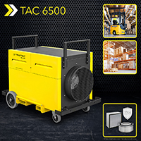 Profesjonalny przenośny przemysłowy oczyszczacz powietrza TAC 6500 to nadzwyczaj wydajny oczyszczacz powietrza do wszelkich zadań związanych z oczyszczaniem powietrza w obszarze zastosowania wózków podnośnikowych – w sprzedaży detalicznej lub hurtowej, w logistyce lub w przemyśle. Tę niezwykłą elastyczność zastosowania umożliwia TAC 6500 przede wszystkim innowacyjna funkcja Vario Shift, dzięki której łańcuch filtrów można dowolnie konfigurować przy użyciu końcowego wentylatora lub filtra HEPA, zgodnie z wymaganiami dla otoczenia sterylnego.