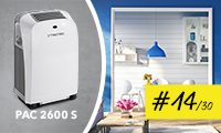 - Ten zarówno kompaktowy, jak i lekki klimatyzator PAC 2600 S można szybko przesuwać z pomieszczenia do pomieszczenia dzięki praktycznym rolkom transportowym. A praktyczna kieszeń na kabel ułatwia przechowywanie urządzenia po sezonie chłodzenia.