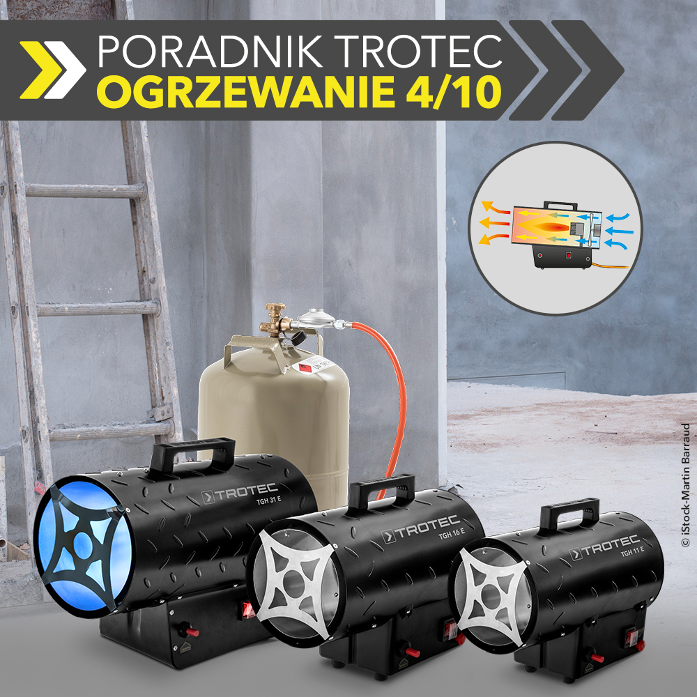 Nagrzewnica gazowa firmy Trotec wyróżnia się doskonałym stosunkiem ceny do jakości. Świetnie sprawdza się do natychmiastowego, skutecznego ogrzewania dobrze wentylowanych budów, warsztatów, magazynów, garaży, stajni, szklarni czy też zadaszonych obszarów zewnętrznych, namiotów i na kempingi. Warto przy tym zadbać o dobrą wentylację wszystkich pomieszczeń, ponieważ nagrzewnice gazowe należą do bezpośrednich systemów grzewczych bez komina. W czwartym odcinku naszegoporadnika firmy Trotec poświęconego ogrzewaniu podpowiemy, na co warto szczególnie zwracać uwagę.