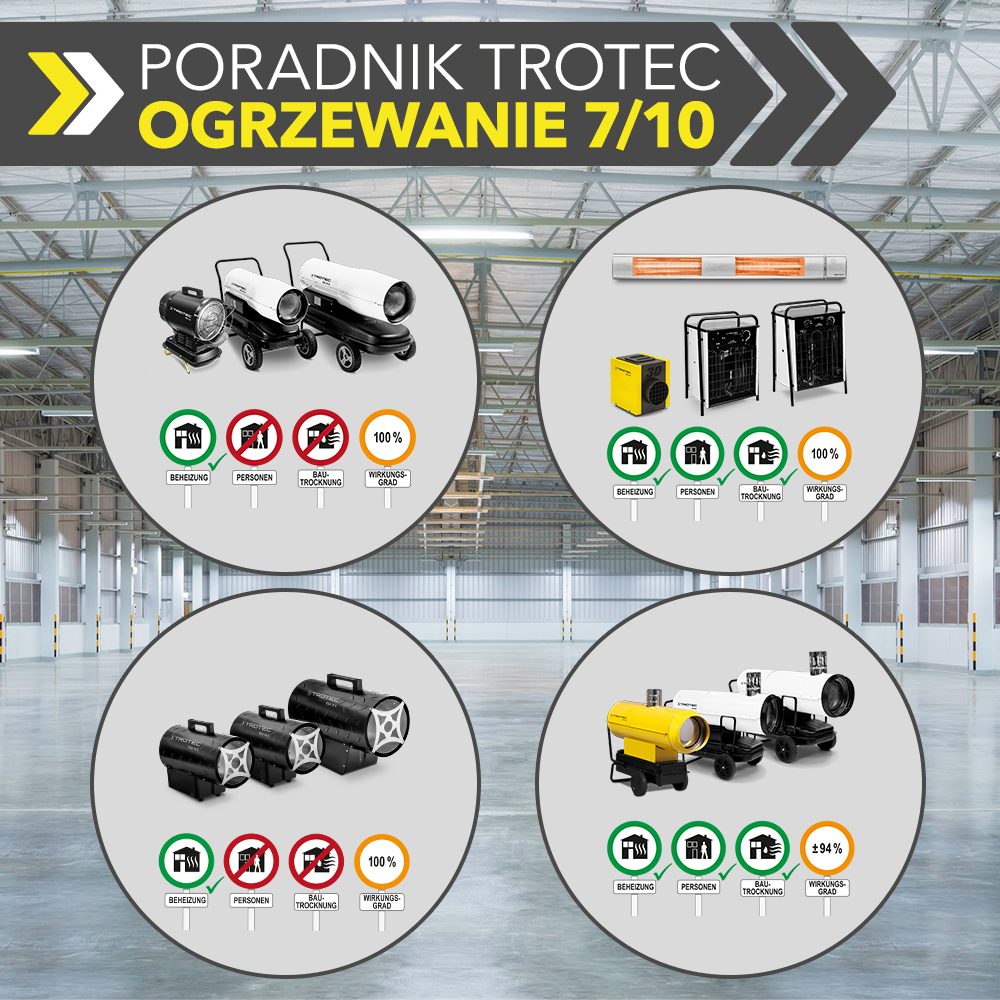 Markowa jakość firmy Trotec – nagrzewnice olejowe, elektryczne i gazowe we wszystkich klasach mocy od 2 kW do 375 kW