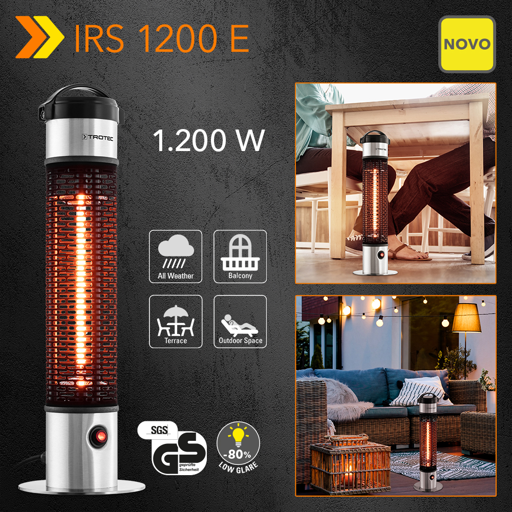 O inverno parece estar a entrar em retirada. Portanto, eis uma razão para não perder mais nenhum dia no pátio ou na varanda de casa. Não importa que esteja frio ou fresco lá fora, com o aquecedor radiante de infravermelhos IR 1200 S, por fim novamente disponível, as temperaturas de verão já podem estar presentes nos seus espaços exteriores. Isto, porque este prático e multifuncional aquecedor de até 1.200 W permite, logo desde o primeiro momento, um aquecimento rápido de todo o espaço circundante. Equipado com dois modernos tubos de aquecimento em quartzo, o aquecedor radiante de infravermelhos converte grande parte da energia elétrica consumida diretamente em calor, o que o torna particularmente eficiente em termos de energia.