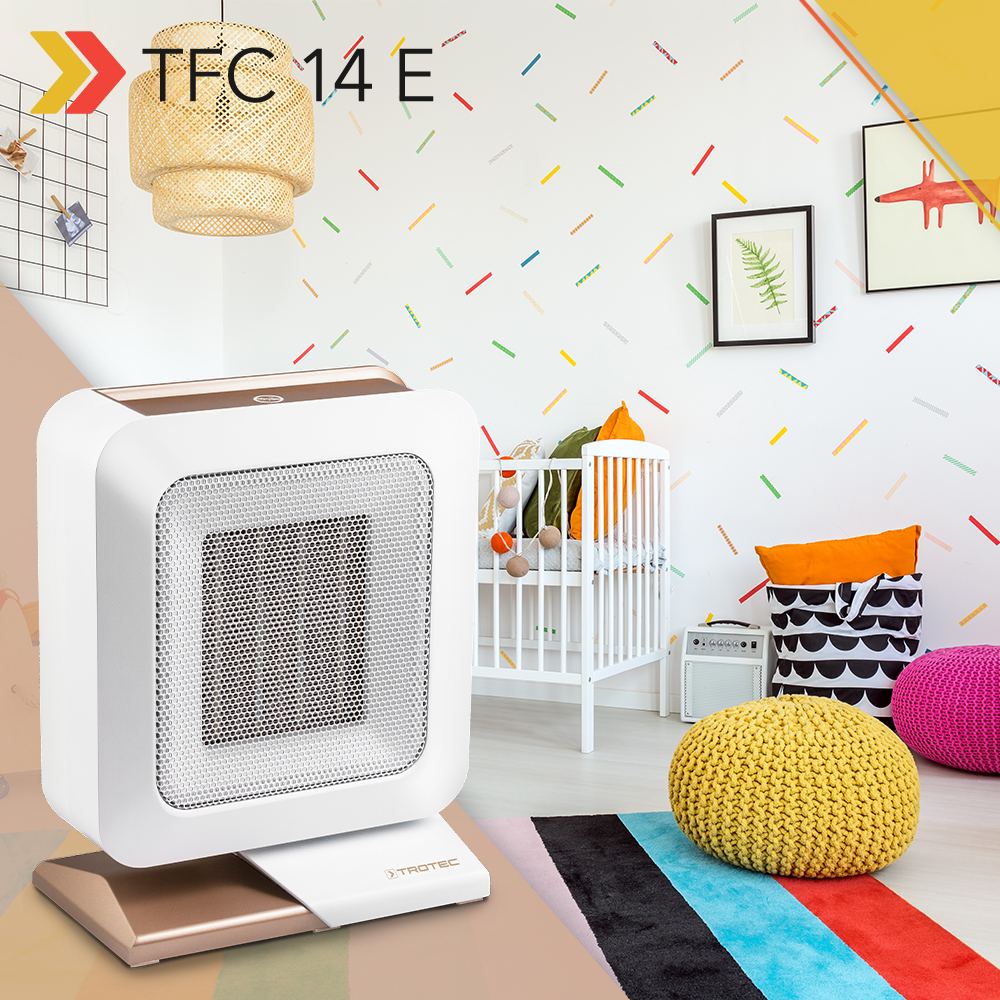 Antes do verão chegar, a primavera é sempre uma boa estação do ano para de vez em quando se ficar com os pés frios. Um pequeno termoventilador adicional seria certamente uma boa ideia, sobretudo quando se pretende evitar um aumento dos custos do aquecimento principal . Confie na quase silenciosa tecnologia de aquecimento cerâmico do termoventilador TFC 14 E, por fim novamente disponível, sempre que seja preciso criar uma agradável temperatura nos quartos. Este aparelho combina a mais recente tecnologia de aquecimento PTC com um atraente design – cor de tendência em ouro rosa! – integra-se harmoniosamente em quase qualquer ambiente de sala.