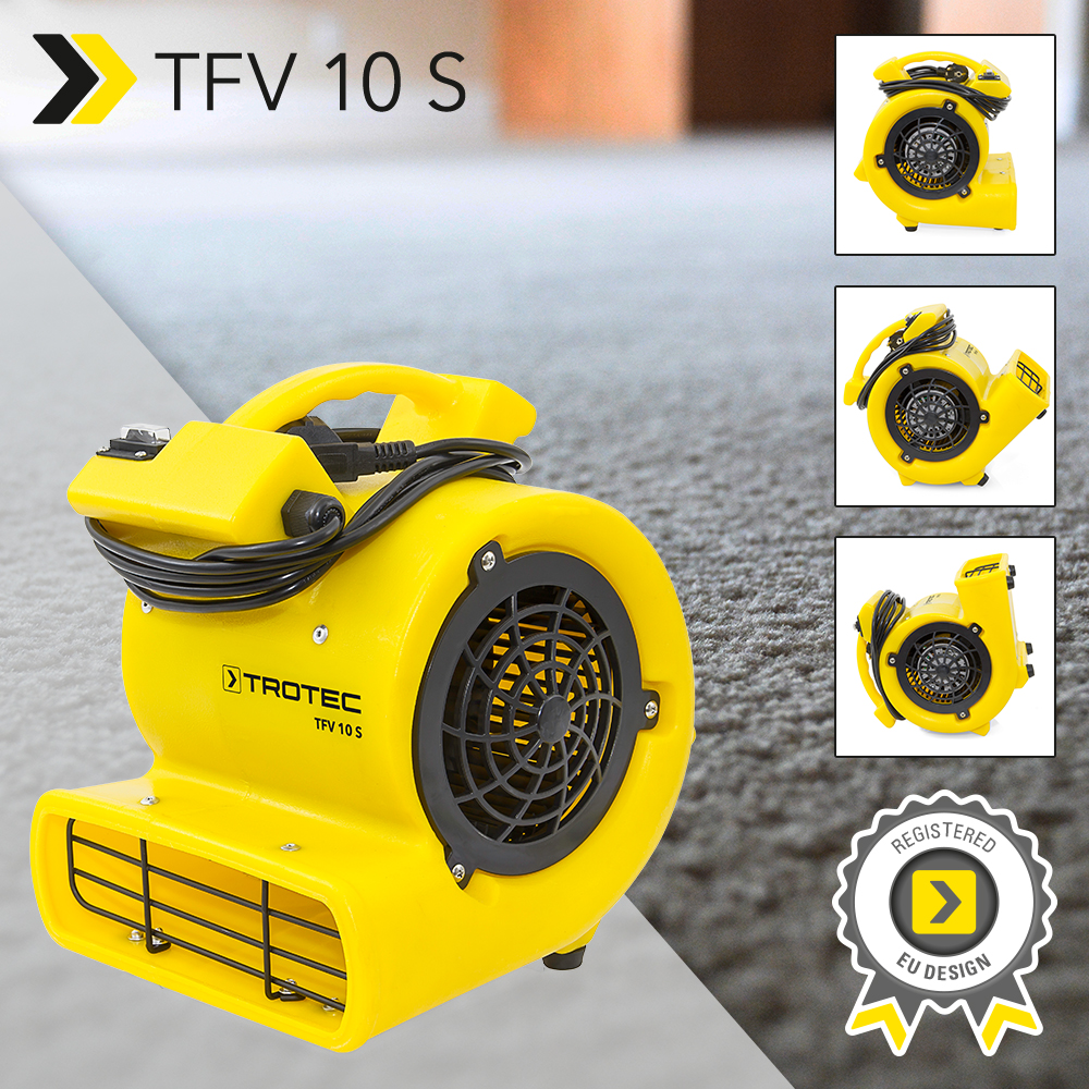 Seja como reforço para a secagem de paredes e pavimentos, secagem de betonilha e estruturas de construção ou limpeza de alcatifas – uma secagem mais rápida também oferece outras vantagens, para além da enorme economia de tempo. A experiência dos profissionais da indústria de saneamentos e construção civil em zonas afetadas por inundações demonstra, por exemplo, que a melhor forma de evitar subsequentemente maiores danos consiste em secar rapidamente os pavimentos e as paredes molhadas. É por isso, que eles dão preferência ao uso do potente ventilador turbo TFV 30 S, dado este especialista, por fim novamente disponível, com o seu canal de saída de ar especialmente moldado, acelerar o processo de secagem.