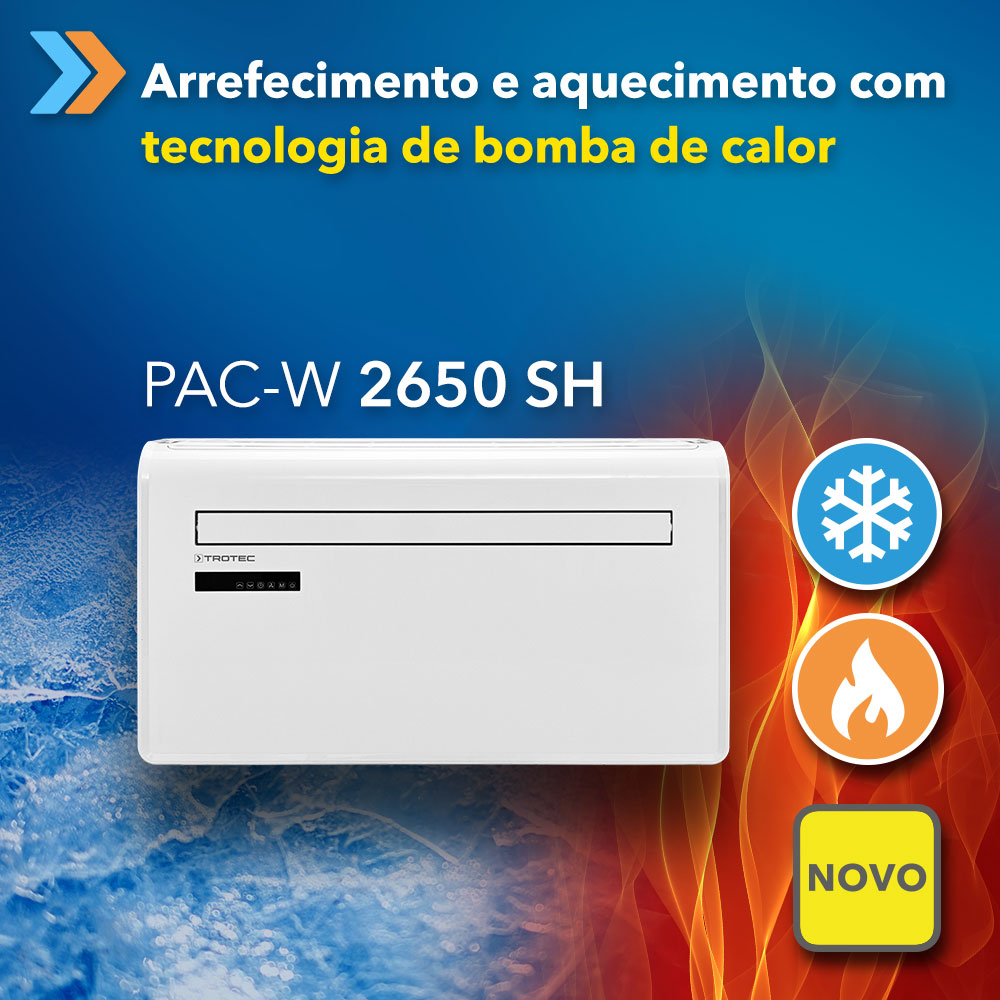 O Verão está a chegar, e com ele várias vagas de calor. Mas antes de sermos arrasados pela primeira vaga de calor, devíamos estar prevenidos: Com pacotes de gelo no congelador, ventiladores, unidades móveis para arrefecimento do ar. Ou apostar simplesmente nas vantagens de um sistema de ar condicionado para instalação fixa – sem tubo de drenagem e sem a incómoda unidade no exterior. Por exemplo, o moderno ar condicionado de parede PAC‑W 2200 S proporciona um arrefecimento rápido nos dias quentes de Verão. O melhor: Este aparelho de ar condicionado monobloco, altamente eficiente, foi concebido para uma instalação completa no interior, prescindindo assim da unidade no exterior do edifício, visualmente desagradável, como é habitual ver-se nos aparelhos que são compostos por duas unidades.
