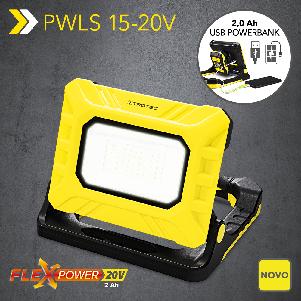 Luz especialmente brilhante para artesãos e entusiastas da bricolagem: A nova lâmpada de trabalho LED com bateria recarregável PWLS 15-20V tem tudo o que os profissionais necessitam: Com um potente fluxo de luz de até 2.000 lúmens no máximo e três níveis de intensidade luminosa selecionáveis! Com uma bateria recarregável Flexpower multiuso de 20V-2Ah, que apenas requer uma hora para ficar completamente recarregada! Com uma prática função de carregador portátil com portas USB, para recarregamento de Smartphones, Tablets, dispositivos de medição e alimentação de rádios nos estaleiro de obras! Com um pé base ajustável em 90º para 8 posições! Com ganchos para ser pendurado! Com fixação magnética! E o melhor: Completamente sem fios!