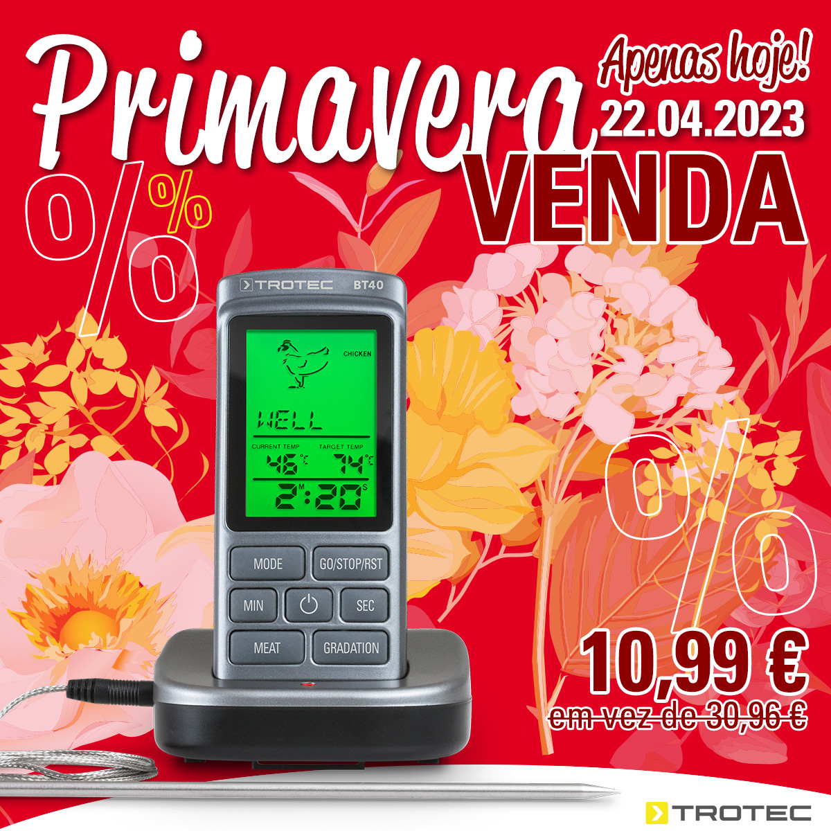 Além das funções de cronômetro e Timer, o Termómetro para Churrasco BT40 convence com seu alcance wireless máximo de até 20 metros. A prática transmissão da temperatura via rádio torna sempre possível que as carnes sejam grelahadas ao ponto desejado mesmo sem inspecções repetidas na grelha.