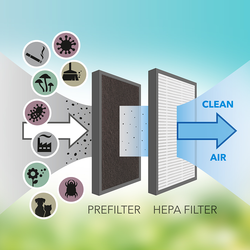 A tecnologia de filtragem HEPA elimina as partículas finas do ar