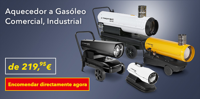 Elevada potência de aquecimento para mecânicos profissionais: se precisar de uma solução rápida e imediata para assegurar um ambiente de garagem agradável – a loja online da Trotec oferece uma vasta seleção de termoventiladores a óleo para oficinas profissionais e garagens de grandes dimensões.