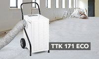 Datorită cererii crescute din partea branșelor meșteșugărești, TTK 171 ECO a fost o bună perioadă de timp vândut de pe stoc. Acum acest dezumidificator profesional se află din nou pe stoc. Datorită capacității sale mari de dezumidificare precum și a construcției sale sub formă de cărucior acest dezumidificator trece ca o soluție deosebit de economicoasă pentru lucrări de uscare pe șantiere și este achizițional deosebit de accesibil.