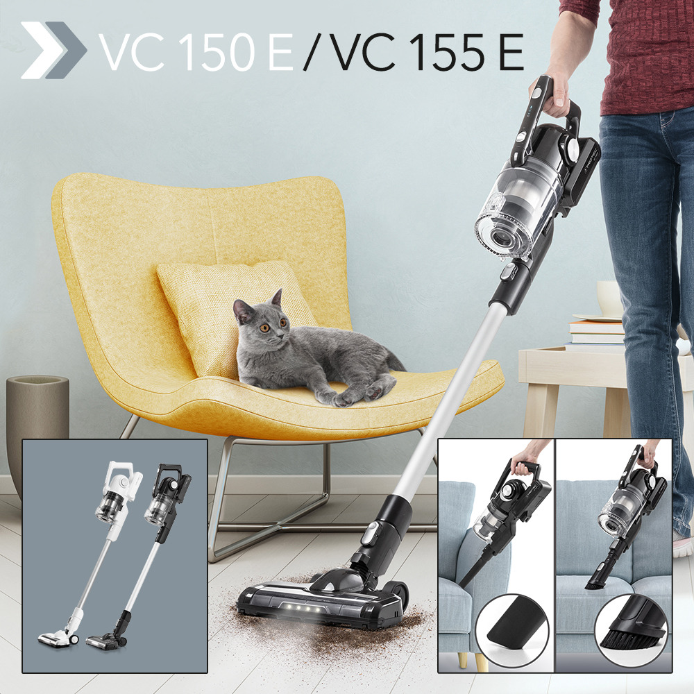 Aspirator vertical cu acumulator VC 155 E și aspirator de mână combinat într-un singur dispozitiv – inclusiv tehnologie puternică cu ciclon de aspirație și filtru HEPA. Din nou disponibil!