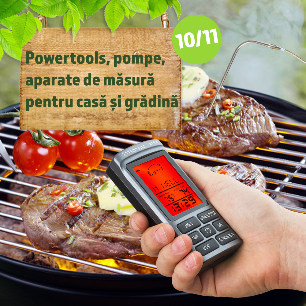 Cu capacitățile sale, pistolul de aer cald HyStream 2100 este perfect ca brichetă pentru grătar. Cu pistolul cu aer cald, cărbunele poate fi aprins complet ecologic, fără substanțe chimice, fum, brichetă lichidă pentru grătar, vată de lemn, gel de aprindere sau alte lucruri. Odată ce cărbunele a fost aprins, petrecerea la grătar poate începe. Puteți folosi termometrul pentru grătar BT40 pentru a vă asigura că carnea nu stă prea mult timp pe grătar și rămâne suculentă. Dispozitivul de măsurare poate fi folosit pentru a monitoriza temperatura și gradul de gătire a alimentelor care urmează să fie preparate la grătar. Continuați să citiți