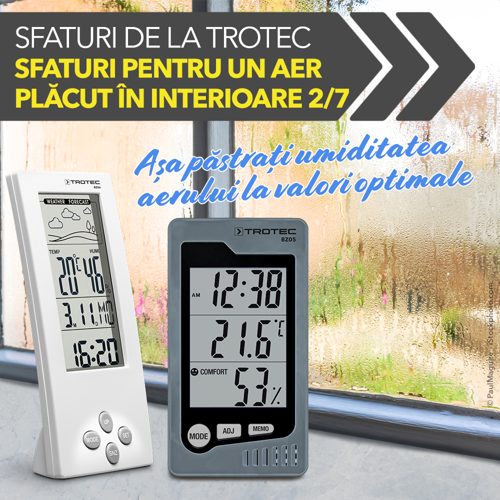 Patru experți, dar cinci păreri? Acest lucru nu este valabil pentru temperatura din încăperile de locuit. Aici este un consens general și recomandarea, ca termostatul să fie setat între 19 și 22 de grade Celsius. La tema umiditate lumea are aceași părere, și anume că valorile optimale se situează între 40 și 60 %. Orice abatere aici, o umiditate prea scăzută sau una peste valorile normale, poate duce  rapid la probleme de sănătate. De aceea este important pentru sănătatea dumneavoastră, să mențineți valorile umidității, atât acasă cât și la birou, în atenție.