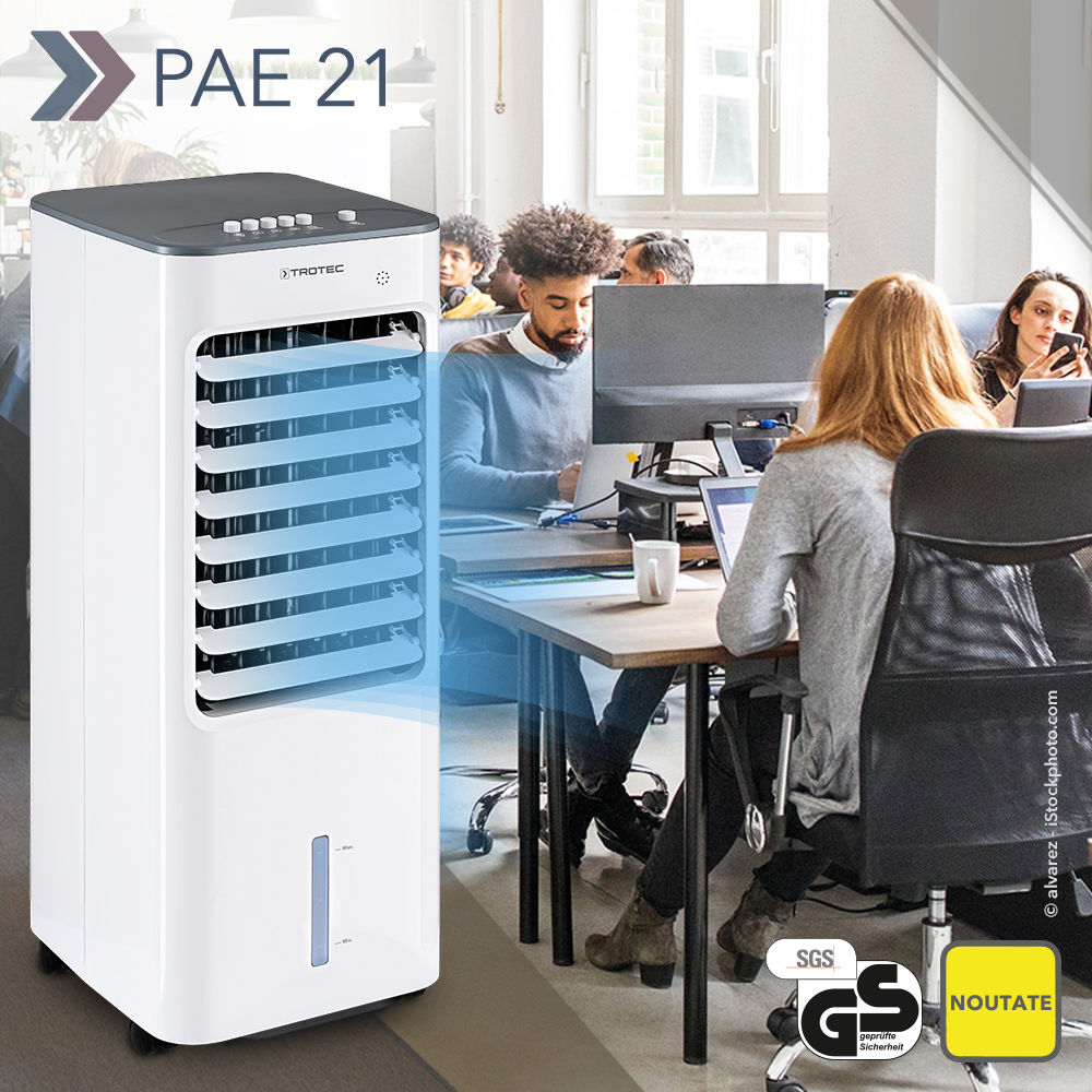 Dacă în zilele fierbinți de vară aerul statut și cald stăruie la birou sau acasă, răcitorul de aer PAE 21 se îngrijește pentru răcoare în doar câteva clipe. Aircooler-ul lucrează eficient energetic și protejează portmoneul deoarece, cu toate că are performanțe mari, consumă doar 50 de wați. În comparație cu aparatele de climatizare standard, el nu utilizează pentru răcire agent chimic și nu necesită o amplasare sofisticată.