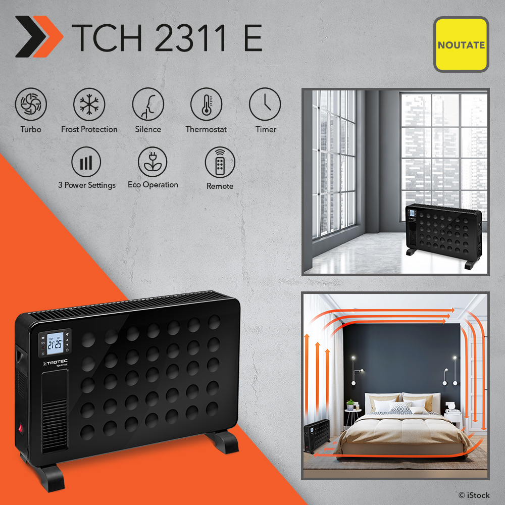 NOU! Convector Design TCH 2311 E: căldură de 2.300 W în trei trepte cu suflată turbo, telecomandă și ecran bine lizibil – acum livrabil