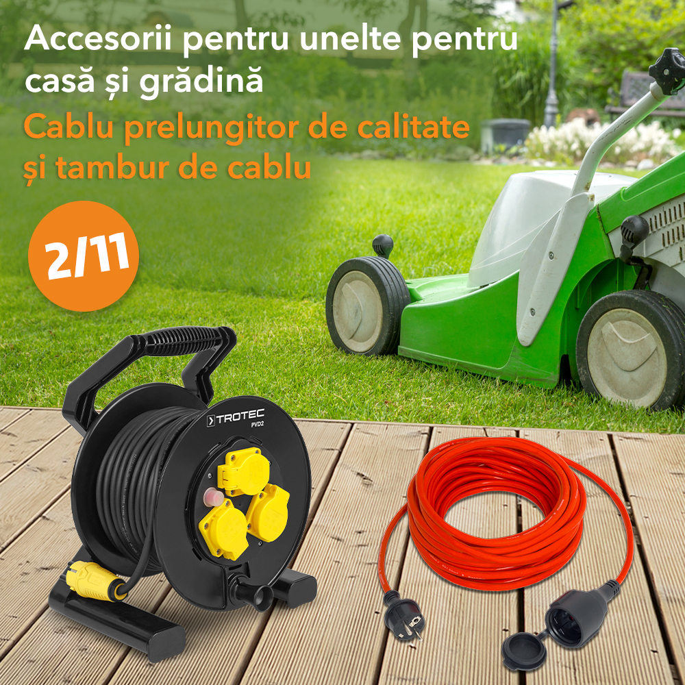 Astăzi este vorba despre un accesoriu de scule electrice adesea subestimat: pur și simplu cablul prelungitor. Absența sa este de obicei observată târziu, de multe ori chiar înainte de efectuarea lucrărilor planificate. Prea târziu! Prin urmare, verificați dacă puteți face lucrările cu adevărat fără aceste accesorii valoroase atunci când utilizați dispozitivele electrice. De altfel, un cablu prelungitor de calitate, precum cel de la Trotec, este altceva decât simplu: mărește autonomia de funcționare a sculelor dvs. electrice cu încă 15 sau 25 de metri. Este rezistent la stropire conform clasei de protecție IP44, deci este potrivit și pentru grădini…și este roșu aprins, ceea ce reduce semnificativ riscul de a ne împiedica de el.