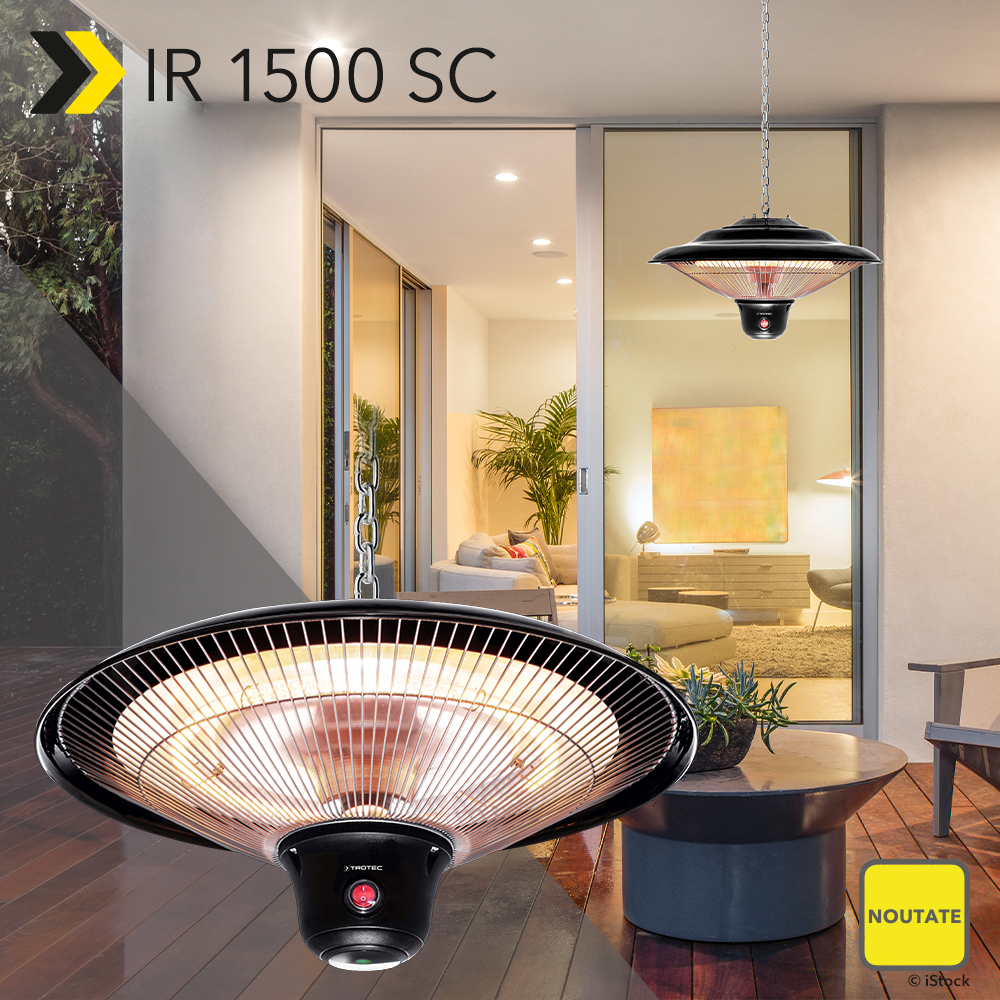 Datorită noului radiator cu infraroșu de tavan IR 1500 SC, nimeni nu trebuie să se mai lase alungat de pe terasă sau balcon de temperaturi exterioare răcoroase. Prin puternica sa tehnologie de încălzire cu infraroșu și prin reflectarea emisiei de căldură de pe plafon, uniformă în toate direcțiile, pentru o suprafață de aproximativ 10 mp, radiatorul mai punctează de asemenea ca o sursă de căldură elegantă, cu carcasa sa din aluminiu eloxat de înaltă calitate. Astfel, vă puteți bucura cu stil pe tot parcursul anului, de temperaturi de vară în zona acoperită în aer liber.