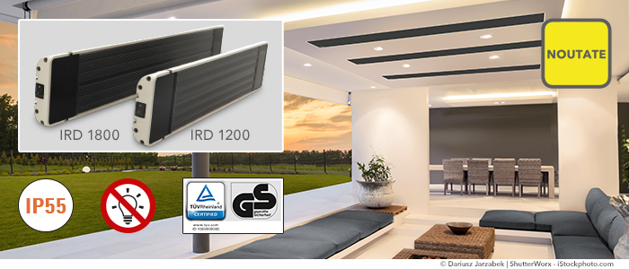 Prin acest amalgam de temperaturi cu care am fost obișnuiți de vreme în ultimul timp, nimeni nu poate oferi o prognoză fiabilă pentru următoarele săptămâni. Va dura vremea frumoasă? Devine din nou urât? Poate chiar rece? Tocmai acum când vă puteți răsfăța cu prietenii și cunoșcuții pe propria terasă! Acest lucru necesită o soluție de încălzire, cum ar fi radiatorul obscur IRD 1200, care este în sfârșit disponibil. Cu aceasta puteți sfida cu ușurință orice atmosferă mai rece de pe terasă și, în același timp, nu numai că această soluție de design inovatoare și de succes din punct de vedere estetic face o figură bună, dar și dumneavoastră veți arăta bine astfel în fața oaspeților.