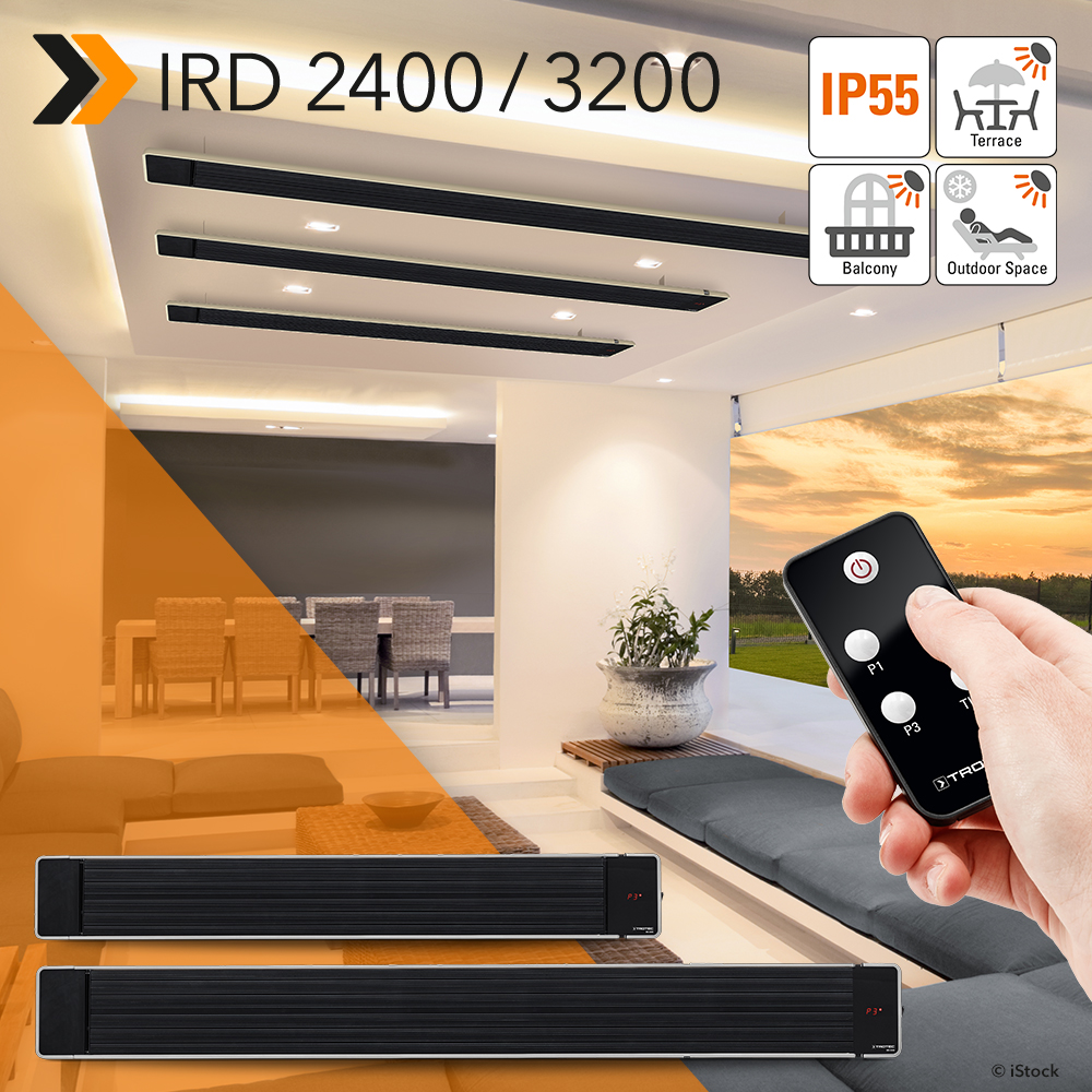 Primul mare val de căldură s-a încheiat, praful saharian a zburat peste noi și furtunile au umplut pivnițele. Acum vin din nou zilele plăcute, când nu este cald. Totuși, în acele momente, poate fi puțin prea răcoros pe terasă în timpul serii. Singurul lucru care lipsește este soluția potrivită de încălzire pentru a putea petrece o seară fără griji cu familia sau oaspeții. Deci, este bine că cele două radiatoare obscure cu infraroșu puternice și elegante IRD 2400 și IRD 3200 au ajuns în sfârșit înapoi în depozit și sunt disponibile pentru dvs. Cu 2.400 sau 3.200 de wați în 3 niveluri de încălzire, acestea oferă căldură confortabilă în zona exterioară și sunt lipsite de tuburile de încălzire strălucitoare, care sunt vizibile altfel la încălzitoarele cu infraroșu convenționale.