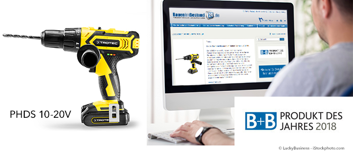 Din 24 octombrie revista de specialitate „B+B Bauen im Bestand“ cheamă pentru a patra oară cititorii să aleagă produsul anului 2018. Chiar și votul dimneavoastră este aici important deoarece în rubrica „Aparate și scule” este un produs de calitate de la trotec din seria Powertool spre alegere: Mașina de găurit cu percuție și acumulator PHDS 10-20V. Deci faceți alegerea și poate câștigați ceva. Cu ceva noroc, ca mulțumire pentru că ați participat la alegeri, puteți câștiga boxele cu blouetooth „Teufel Bamster Pro” și multe alte premii!
