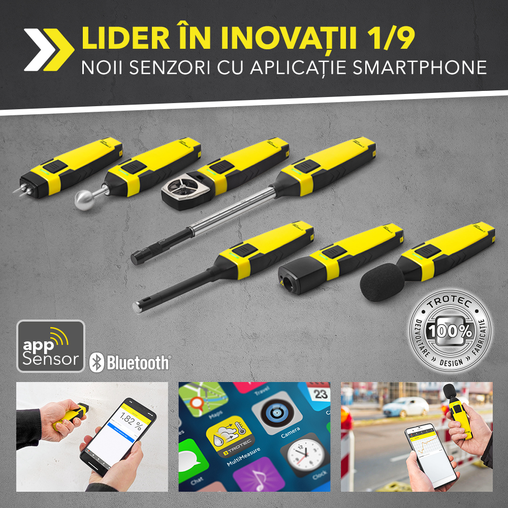 Aparate de măsură tip senzor cu aplicația mobilă MultiMeasure de la Trotec