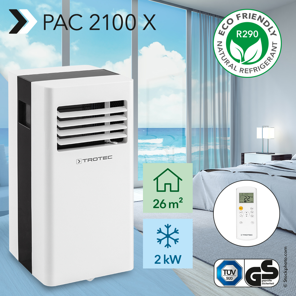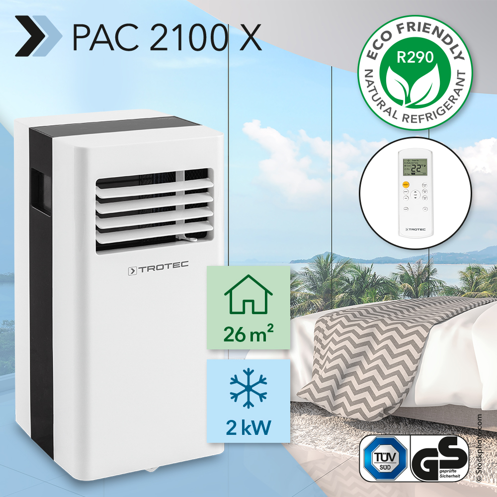 Aparatul de climatizare 3-în-1 PAC 2100 X reunește în carcasa sa trei funcțiuni pentru o climatizare și un aer plăcut în încăpere. Jocul făcut de aparat este susținut de funcțiuni ca cea de răcire, de ventilare și de dezumidificare și astfel aparatul poate fi utilizat multe zile din an, indiferent cât de cald este afară. În plus aparatul se lasă utilizat și pe timpul nopții pentru a conferi un somn plăcut și odihnitor.