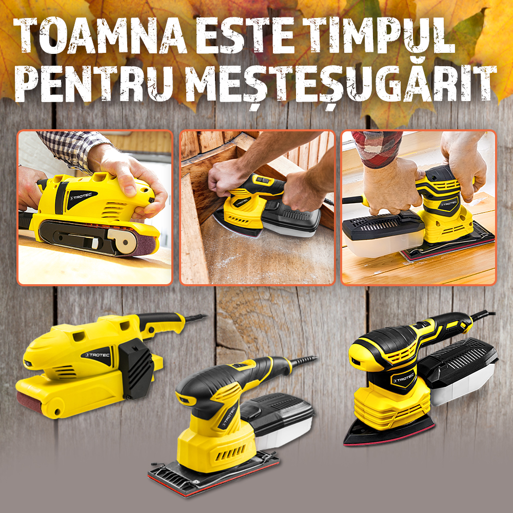 În sfârșit toamnă! În sfârșit reparăm prin casă! Cu șlefuitoarele multifuncționale și cu bandă ieftine și de calitate marca Trotec Trotec